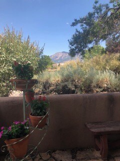 La Casita is a cozy, private studio space with a queen bed and a separate bathroom. The kitchenette is equipped for simple meals. There is a loveseat, dining table with two chairs, desk, hangers and a dresser. The front porch has seating and the private back patio has a lighted pergola, dining furniture, & Sandia mountain views. Balloon Fiesta Park is nearby & balloons fly nearby year-round. Situated at the crossroads of culture & vistas! UP TO 2 DOGS WELCOME, NO CATS.