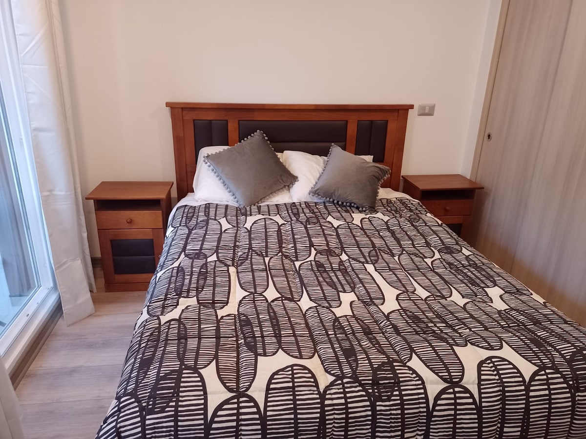 Disfruta de la comodidad y estilo en este departamento full equipado, ubicado estratégicamente con acceso a Av. Picarte y Costanera, a solo minutos del centro de Valdivia. - Living comedor. - Cocina full equipada: horno eléctrico, campana, microondas, lavavajillas, refrigerador, hervidor, tostador, cafetera y licuadora. - Baño con termo eléctrico, plancha, secador de pelo y toallas. - Dormitorio con cama de dos plazas. - Terraza. - Wifi 800mbps - Estacionamiento techado al interior del edificio.