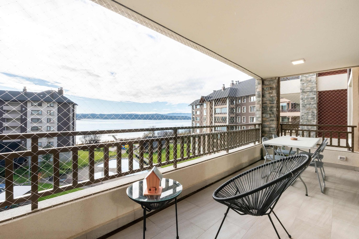 Departamento condominio privado, ubicado en segundo piso y excelente aislación térmica (termopanel) * 1 Habitación con cómoda cama Europea 2 plazas. * Baño en suite y walking closet * Cocina totalmente equipada * Sofá * Tv 49”, aplicación canales movistar y Amazon prime * Calefactor Electrico * Estacionamiento privado al interior del condominio