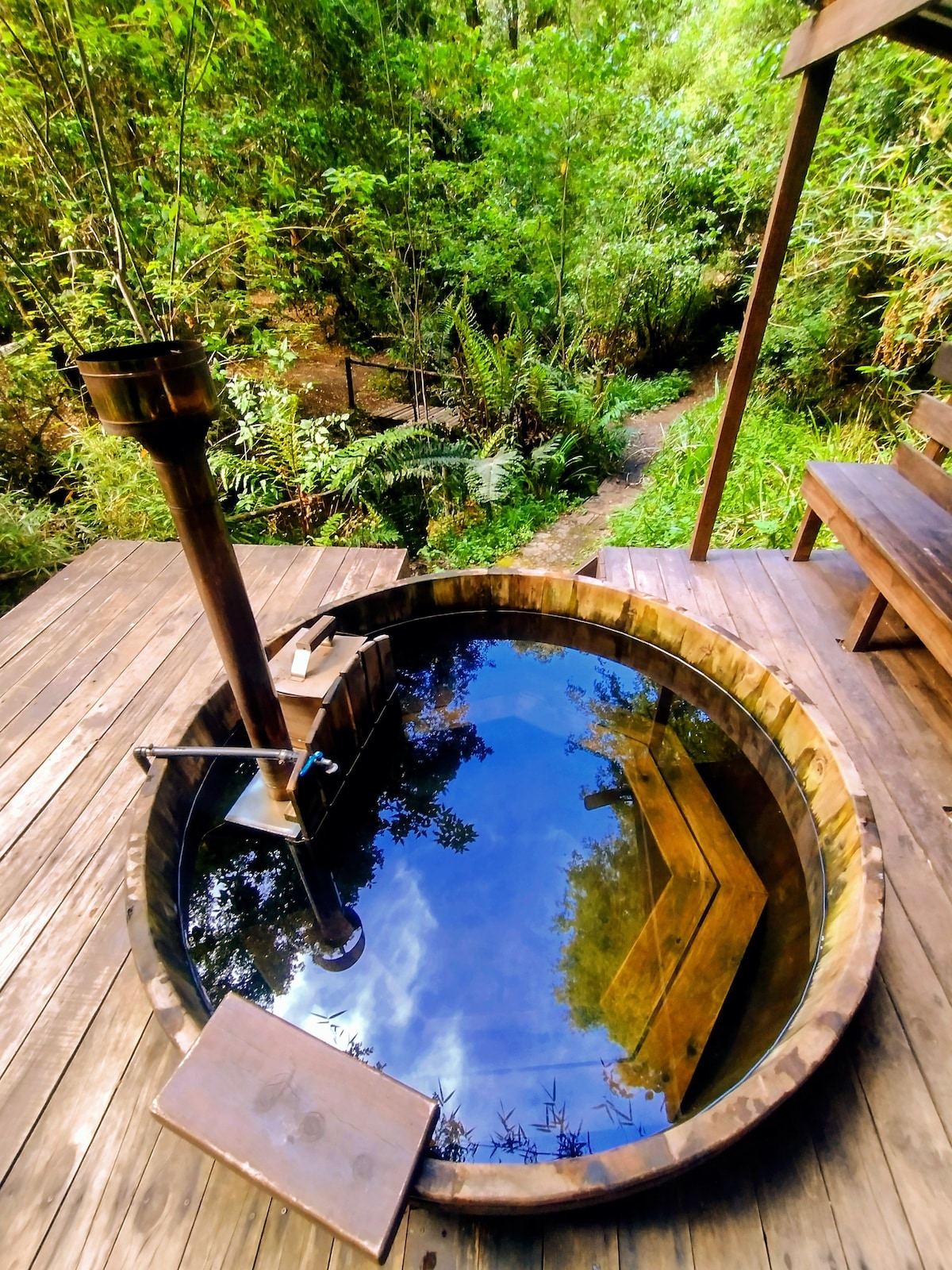 拥有美丽景观和温水浴缸的小屋