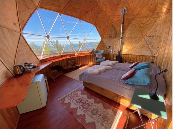 Primero agradecer por la intención de conocer mas al detalle nuestro acogedor Domo con vistas al Volcán Quetrupillán de día y al espacio cósmico por la noche. De acceso directo y rodeado de naturaleza autóctona, el domo esta completamente equipado para hacer de tu estadía en perfecta armonìa con el entorno natural. Rodeado de lagunas ocultas y otras de uso exclusivo, saltos de agua y cascadas a pocos minutos y el rio Huililco que con el sonar de sus aguas, entre sus piedras, dormirás cada noche