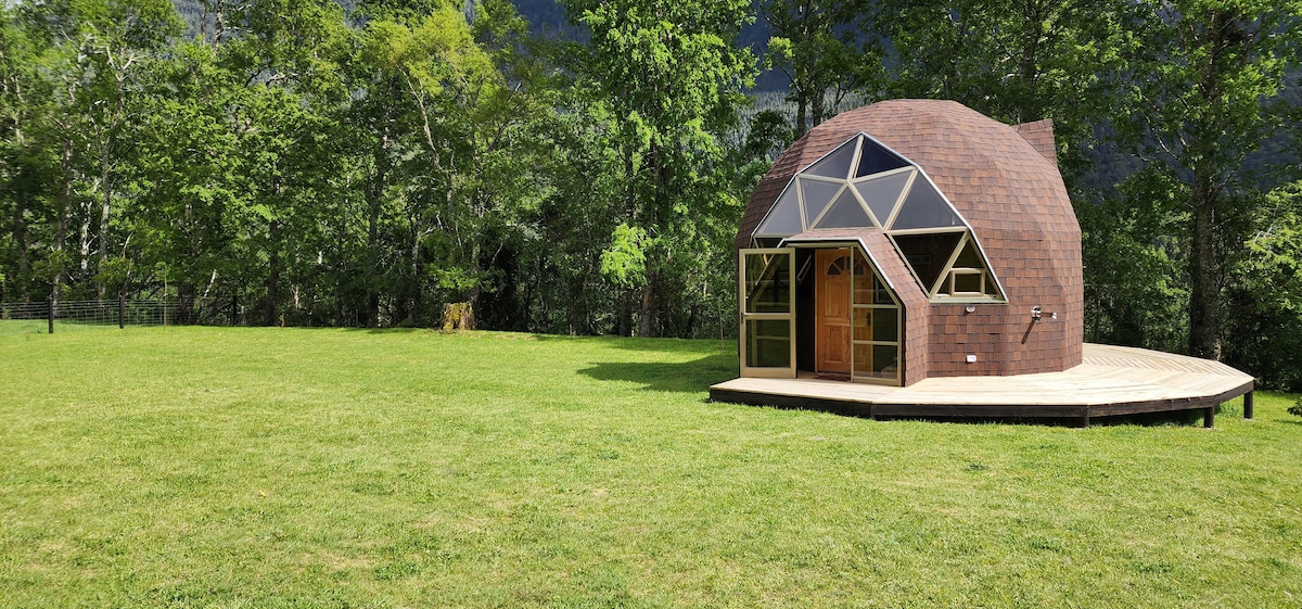 Ubicada en medio de la vegetación y rodeado de cerros, nuestro Domo se encuentra en un lugar privilegiado con paisajes únicos, todo dispuesto para que pases una estadía llena de tranquilidad y mucho aire puro. Nuestra ubicación favorece la visita a varios lugares turísticos de la zona por su cercanía con ellos, termas, playas, parques, cascadas, entre otros. No dudes en pasar unas buenas vacaciones junto a nosotros, ven te esperamos.