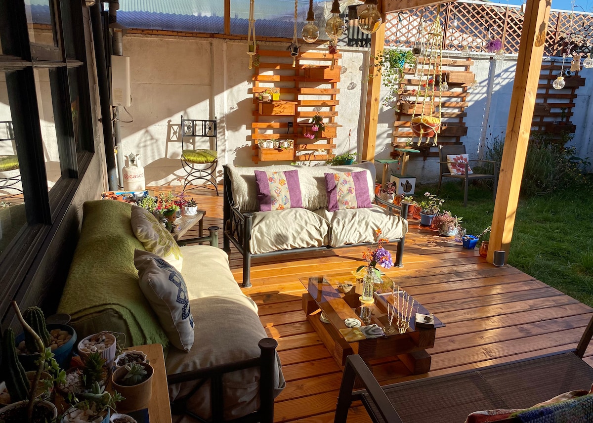Habitación equipada completa para dos personas en patio trasero. Cocina, lavadora, estacionamiento gratuito, wifi de alta velocidad y parrilla. el lugar es sencillo pero muy acogedor y tranquilo. nos encontramos en Pucón a sólo 5 minutos del centro mismo y unos 25 caminando locomoción publica a la puerta ( colectivo n 3) Uber y algunos negocios cercanos para compra de alimentos basicos