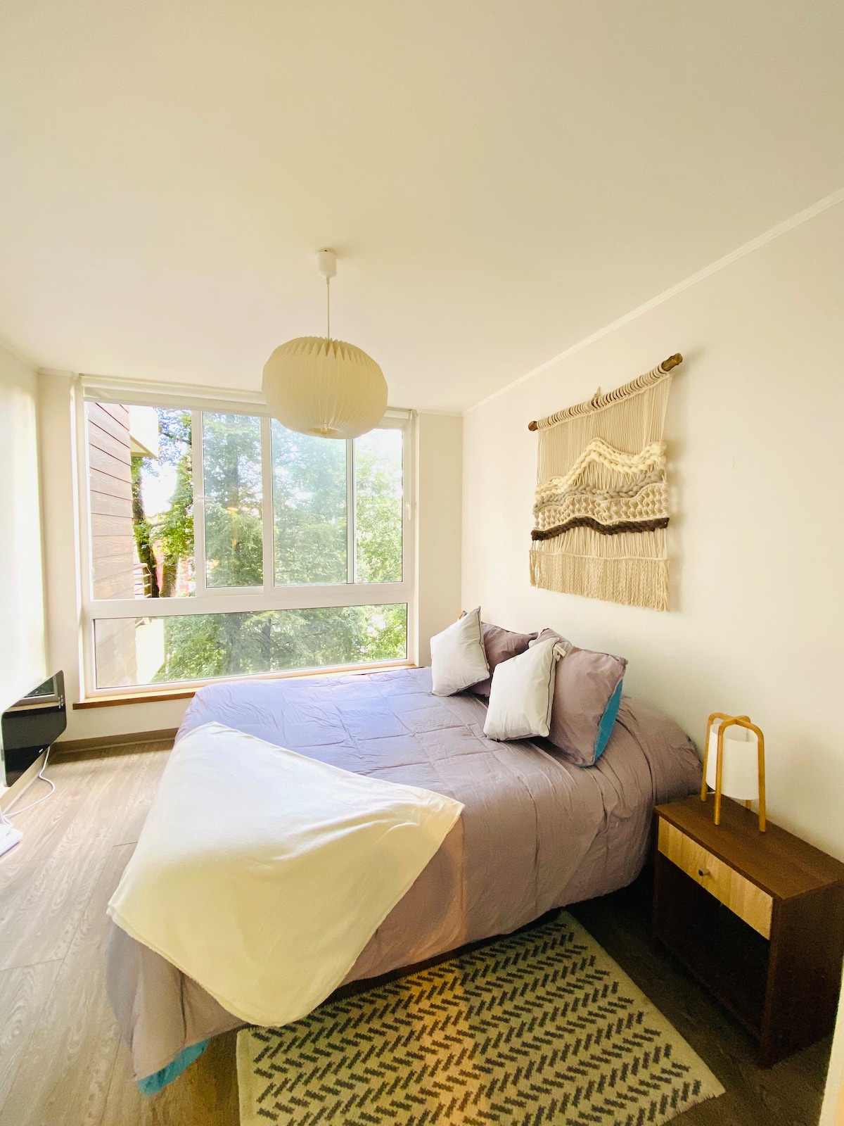 Beautiful apartment, with all the amenities and lovely decor, for a wonderful stay. The condominium features gardens and native trees that can be admired from the apartment's terrace. Located on the Camino al Volcán, it's 15-minute drive from the Sky Center and 10-minute walk from downtown Pucón, where you'll find several high-end restaurants. We recommend Café La Berlín; its desserts and coffee are a must-try. The lakeside beach is 2 minutes from downtown Pucón.