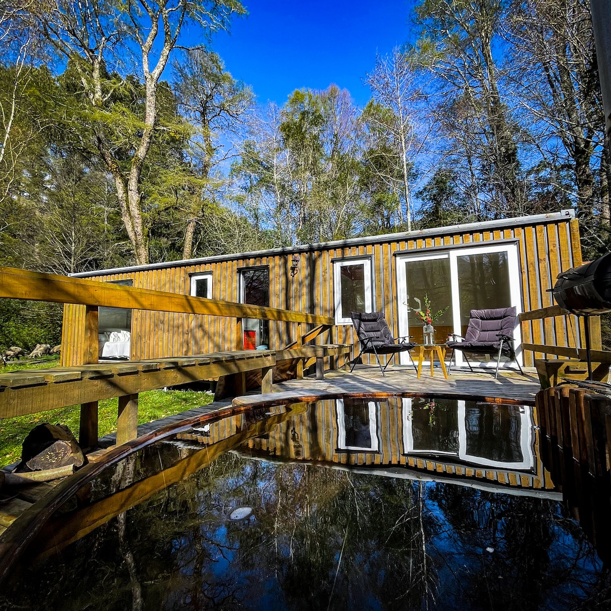 Aldea Molco lo que siempre buscaste una cabaña en medio del bosque nativo Un lugar para desconectarte de todo per sin alejarte de la ciudad La piscina, juegos para niños y el pozon se encuentra en zonas comunes Cabaña totalmente equipada con todo lo que necesitas para una estadía Tinaja privada a su costado una fogata 100% conectado con la naturaleza pero con todas las comodidades para una estadía ideal La tinaja tiene un valor de $30.000 por noche se tiene que avisar con un mínimo de 24 horas