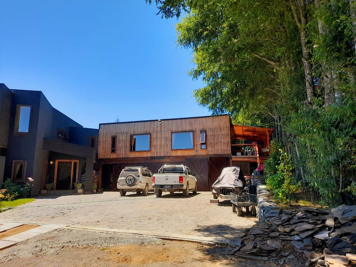 Desconecta de tus preocupaciones en este amplio y nuevo espacio independiente anexo a casa principal , ubicado en un entorno tranquilo, rodeado de bosque y toda la belleza natural de Pucón,cuenta con vista parcial al lago.Uso de toda la casa con amplia terraza,estufa a pellet,mesa de pool,cocina americana,estacionamientos.Condominio con piscina,seguridad 24/7 ,portón de acceso controlado.A sólo 10 mins del centro de Pucón y todos sus atractivos. Playas,lago,restaurantes,cafés,boutiques,casino.