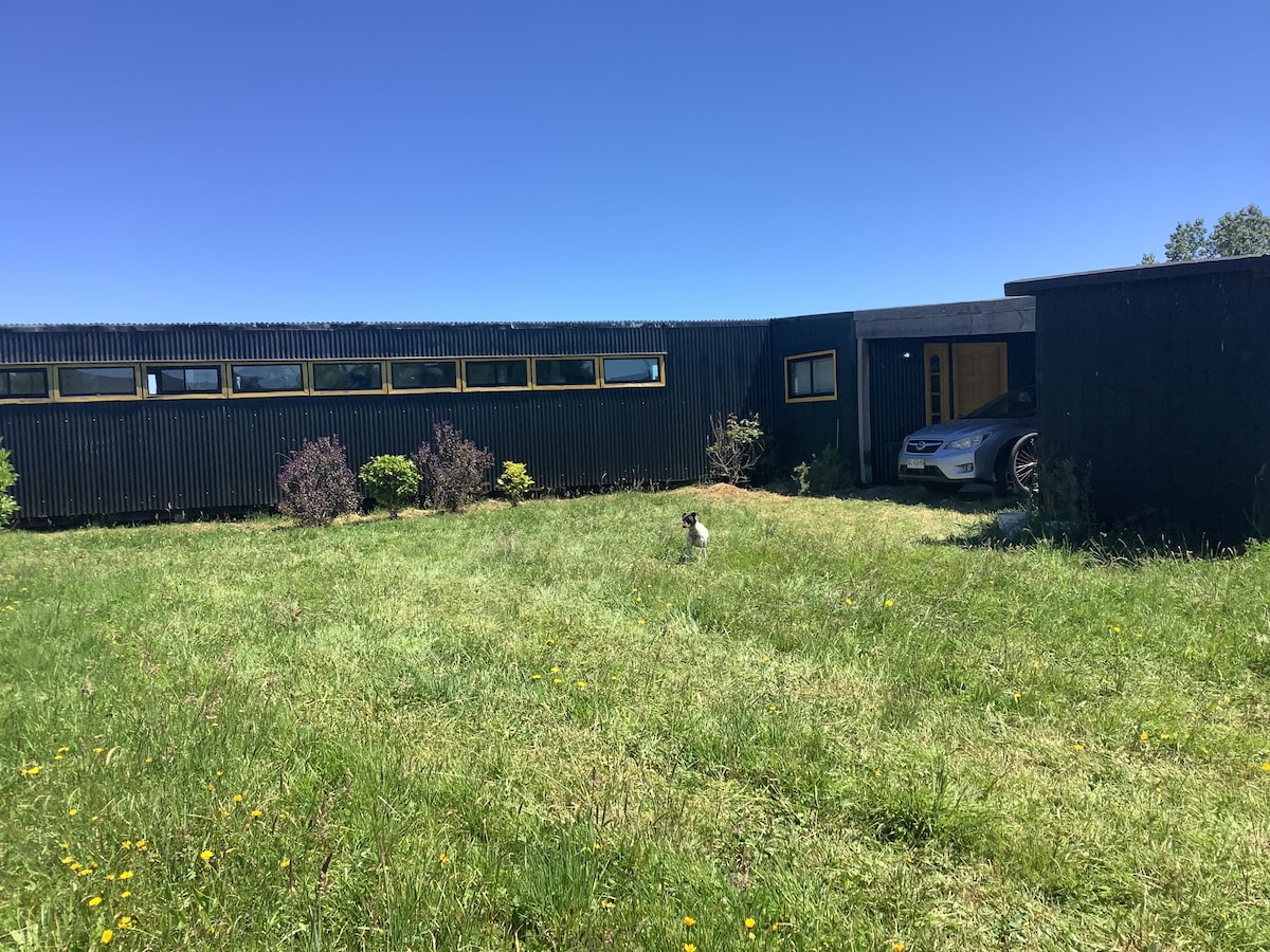 A solo 10 minutos de Huilo Huilo y otros atractivos turísticos. Cabaña para 4 personas full equipado y con conexión a y wifi El comedor cuenta con microondas, licuadora, vajilla completa, utensilios y TV con wifi. Además, quincho y áreas comunes, compartidas con los demás huéspedes. Piscina techada (no temperada) Tinaja y sauna privados a orilla del estero (servicio adicional, reserva con 1 día de anticipación). Incluye sábanas y toallas. Estadía mínima: 2 noches La calefacción es con bosca