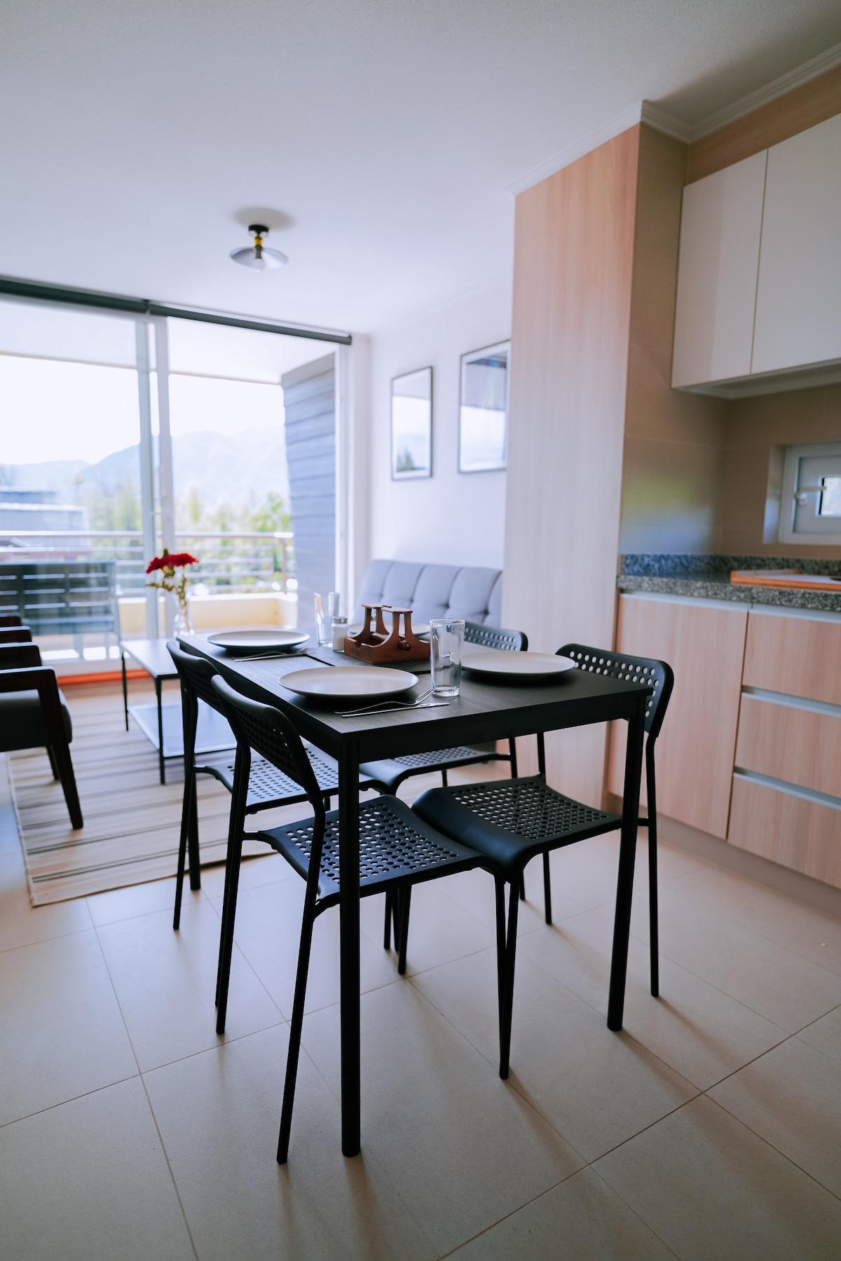 Disfruta de tu visita a Pucón, en este hermoso y acogedor departamento a estrenar, 1 dormitorio, 1 baño, sillón cama en el living, amplia terraza, cocina totalmente equipada, con todo lo necesario para pasarla bien en tus vacaciones. A tan solo 5 minutos del centro de la ciudad. El condominio ofrece amplias áreas verdes, piscina, gimnasio, club house, quincho, lavandería. Conserjeria 24/7 Estacionamiento Piso 1 con vista al jardín