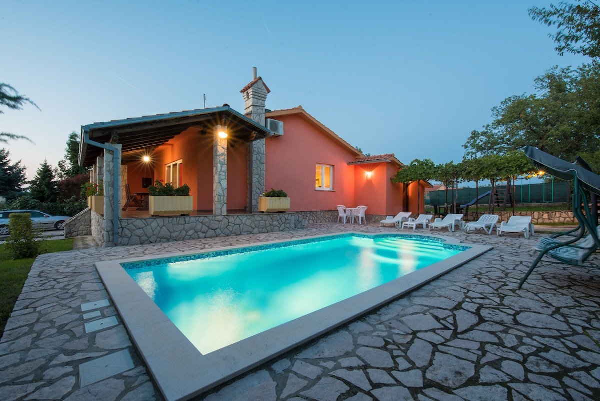 Beautiful luxury villa in Linardići with unobstructed view of the sea. The house can accommodate 6-8 persons. The guest has on their disposal a private heated pool, jacuzzi and outdoor sauna. The brand new, tastefully furnished villa has 3 bedrooms, 2 bathrooms, living room, kitchen and dining room, another toilette, spread over 2 floors. Fully equipped, air-conditioned, ideal for a family or group of friends. Free WiFi.