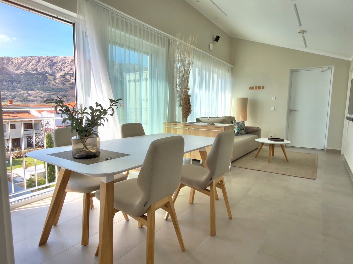 Visit us in the most beautiful spot in Croatia - on the island of Krk in BASKA! Our exclusive holiday complex has 9 spacious self-catering apartments with a balcony or terrace and garden, a private pool area with sunbeds and parking spaces for our guests right next to the accommodation. Due to their size and equipment, the apartments offer all possibilities for a holiday for two, with the family or with friends.