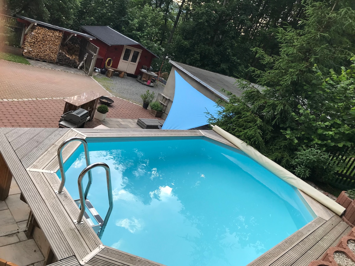 Beautiful house direct on the lake "Eibenstock" in the UNESCO World Heritage Erzgebirge. Completely furnished with a huge kitchen including all you need for cooking. A living room with a fantastic view over the mountains & the lake. The bath has a shower, bathtub, WC & bidet. The house has a big terrace and a garden with a lawn. It´s an ideal start for walking, bicycle or skiing tours in the beautiful Ore Mountains.