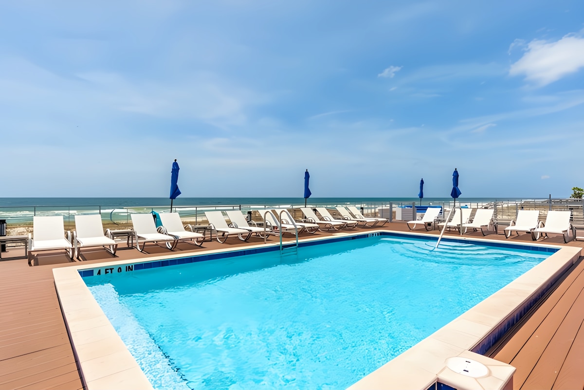 Welcome to a place you will want to return to time and again. Fresh renovations, all the amenities! Steps away from a Tiki bar and huge outdoor pool/hot tub! Live music almost nightly! Parking right out front! Johnson and Orange Beach are minutes away. Our goal is to make sure you have the best possible time! You deserve a break. The couch pulls out to a queen bed. Enjoy full kitchen, large shower, fitness center, indoor and outdoor pool and if something feels like it’s missing, let us know!