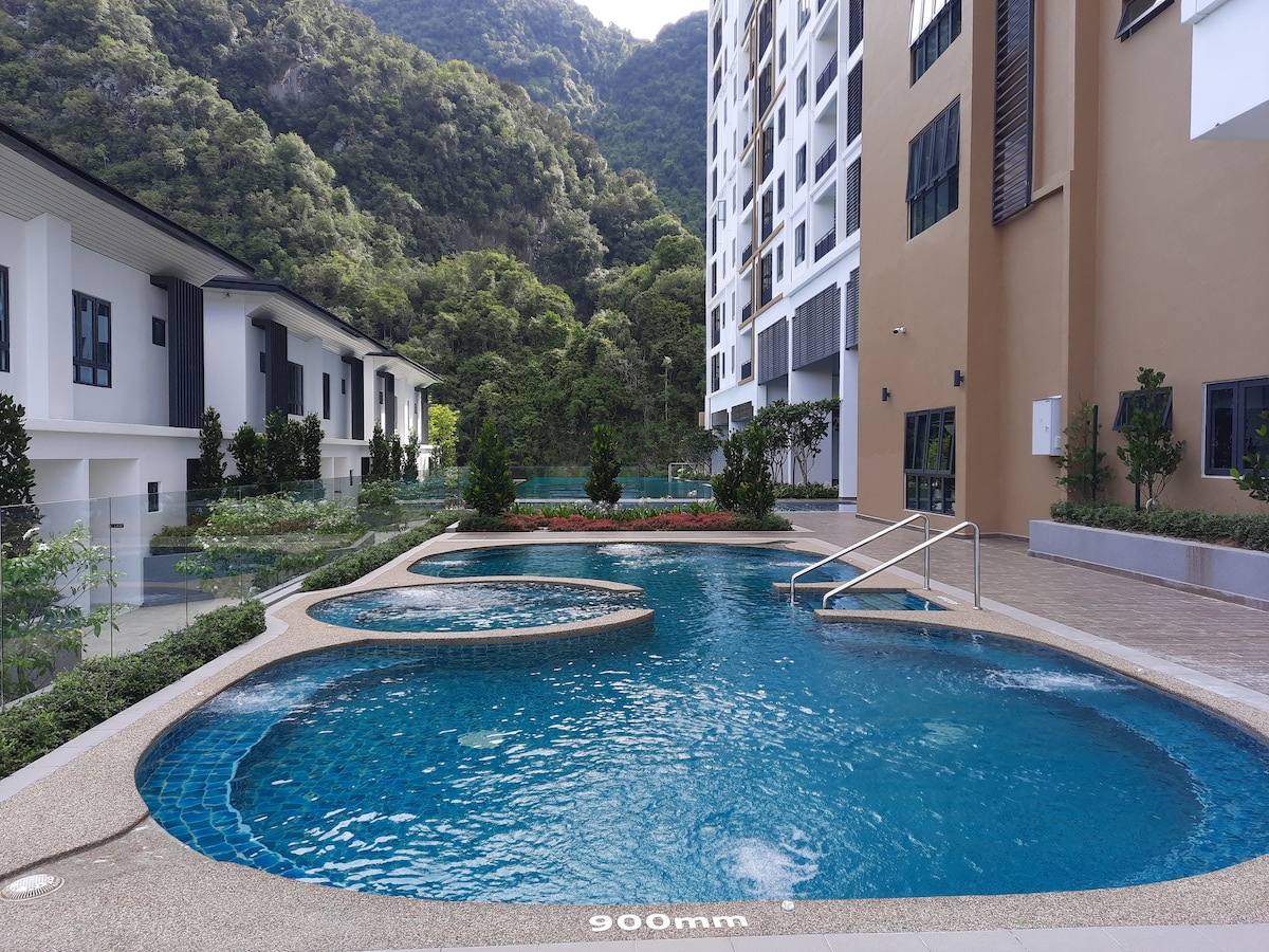 Studio unit apartment fulfil your vacation needs with your loved one. Walking distance to Lost World of Tambun is huge theme park in Perak. The unit furnished with one king bed, wi-fi, smart TV and tableware. Skip your hectic day with short-gateway or staycation 2.5 hours from KL or Penang. The unique amenities at our apartment is the ONSEN pool (hotspring) from natural source. Besides that, our apartment equipped with gym, games room (snooker and foosball) and sauna room.Pack your bag now!!