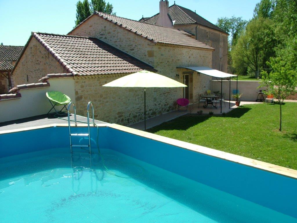 Agréable petite chambre dans une vieille ferme rénovée. Accès par un escalier en pierre et une terrasse (partagée) avec une très jolie vue sur la campagne. La chambre se situe dans un bâtiment qui compte également une autre chambre et un appartement qui ouvrent sur la même terrasse. Il y a une auberge sur place pour déjeuner ou dîner (nous contacter pour connaître les jours d'ouverture) La piscine est partagée avec les autres résidents. Des petits déjeuners sont possibles en supplément (9 €)