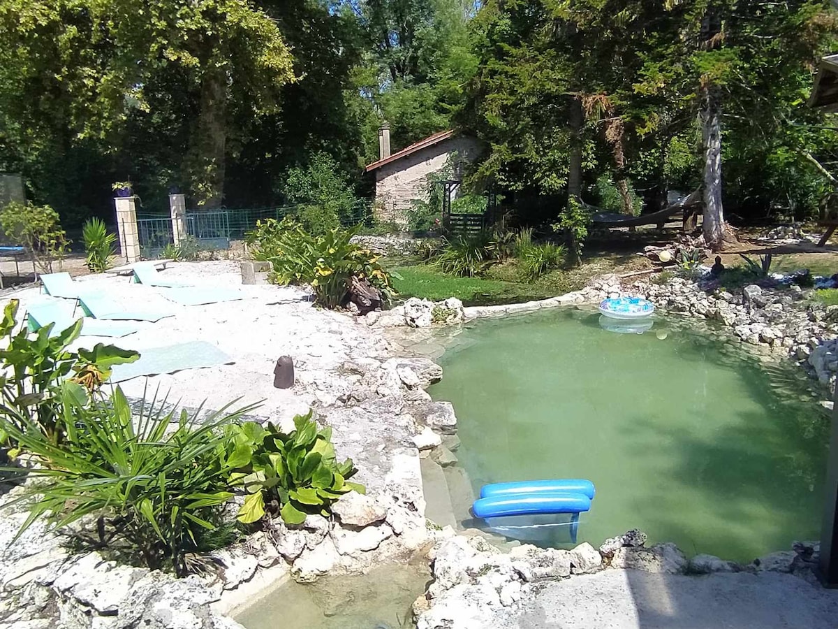 Maison avec bassin naturel et vue sur le Lot