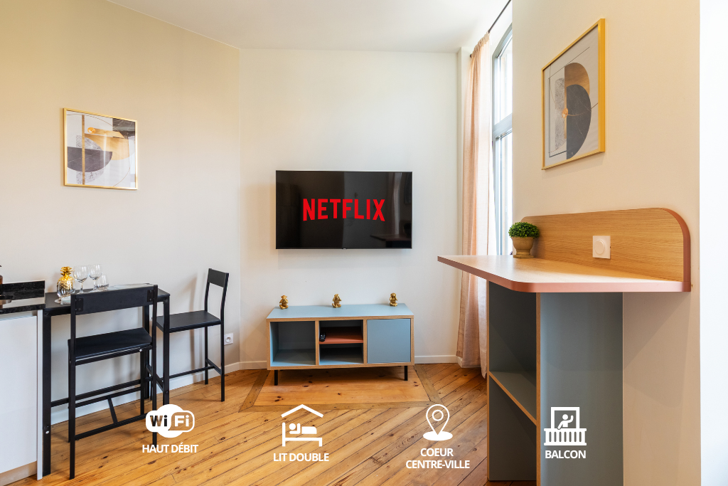 Appartement de standing de 55m² avec patio de 15m² dans une résidence rénovée et sécurisée au centre ville. Il est situé au rez-de-chaussée et entièrement de plain-pied. Toutes les pièces sont équipées d’une climatisation/chauffage et de volets roulants électriques. Ce logement spacieux bénéficie de calme tout en étant au plus proche des commodités du cœur de ville. Vos déplacements pourront aisément s’effectuer à pieds ou à vélos. Un local vélos est d’ailleurs disponible dans l’immeuble.