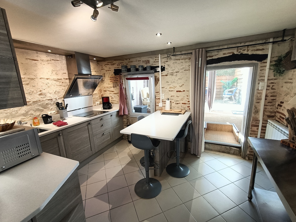 Centre ville avec ses restaurants, son cinéma, ses animations, ses commerces alimentations... pas besoin du véhicule pour sortir. Quartier calme. Étape Professionnelle idéale pour sa tranquillité. Étape Vacance idéale pour la découverte des alentours. Parking Privé . Garage si besoin. Draps de lit et de bain fournis, savon shampooing compris. C'est avec plaisir que nous vous guiderons dans vos découvertes et seront toujours près de vous a la moindre demande car nous résidons à côté !