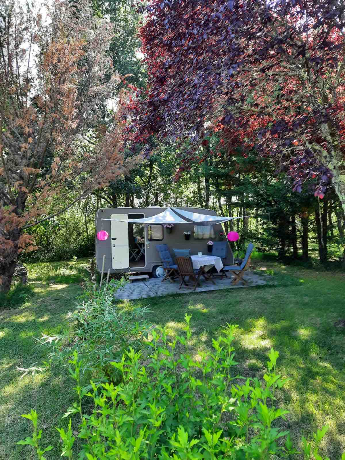Caravane située sur notre joli domaine de 4 hectares. Nous aurons le plaisir de vous accueillir et de vous faire découvrir notre mode de vie (permaculture, poules, forêt comestible) au plus proche de la nature. Les enfants sont également les bienvenus et pourront profiter de notre place de jeux (toboggan, tyrolienne, bac à sable, balançoire et trampoline)