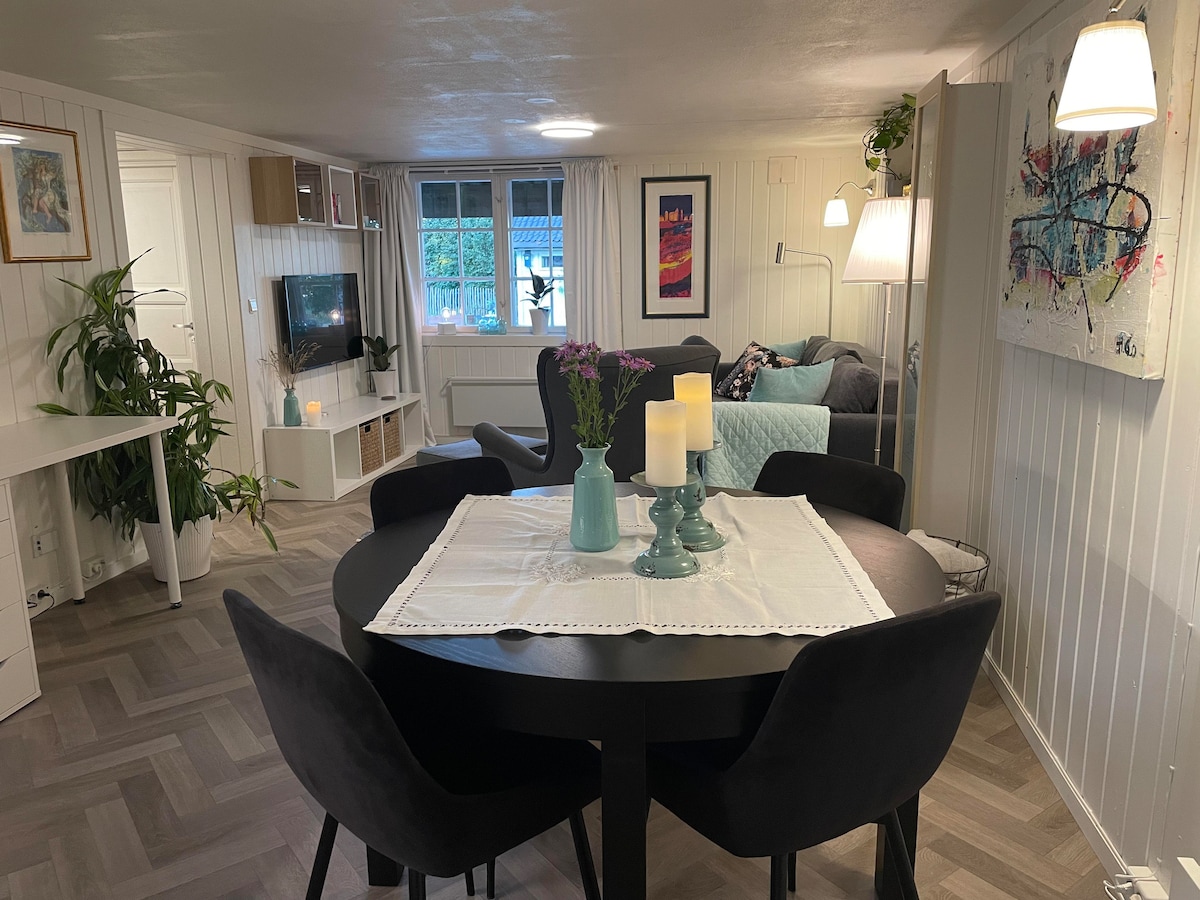 Koselig overnattingssted med sentral beliggenhet ved Stange sentrum i Granbakkvegen 2. Leiligheten ligger i sokkeletasjen til en enebolig. Den har egen inngang og egen romslig uteplass, godt egnet for både måltider og hygge. Leiligheten og den tilhørende uteplassen ligger østvendt og har morgensol. Leiligheten er godt utstyrt med alt du trenger til et trivelig opphold. Det er kort vei til fine turområder både sommer og vinter, og kun en liten biltur ned til Mjøsa. Gåavstand til tog og buss.