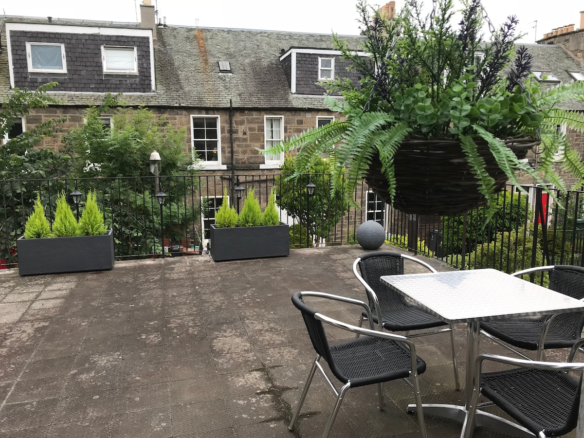 Beautiful 2 bedroom apartment in a central location within walking distance of shops and main attractions. A bright and trendy first floor floor apartment on a leafy residential street. The living area is spacious and furnished to a very high standard. Double and single bedrooms with luxurious mattresses and bed linen. Fully fitted kitchen and shower room. Unique large roof terrace. This apartment is the perfect base for a holiday or business trip to the wonderful city of Edinburgh.