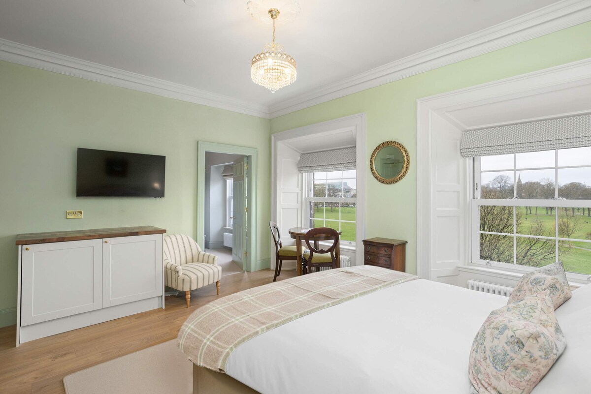 Stay in a beautiful Georgian townhouse, overlooking a historic public park in Edinburgh. The Townhouse has eight unique self-catering hotel suites to choose from, this being our luxury studio for two - The Wallace Suite. The property is well connected by tram to Edinburgh city centre and airport, with the local tram stop only a 5 minute walk away. Explore the vibrant local neighbourhood, 'The Shore', with a host of independent shops, cafes, pubs and award-winning restaurants.