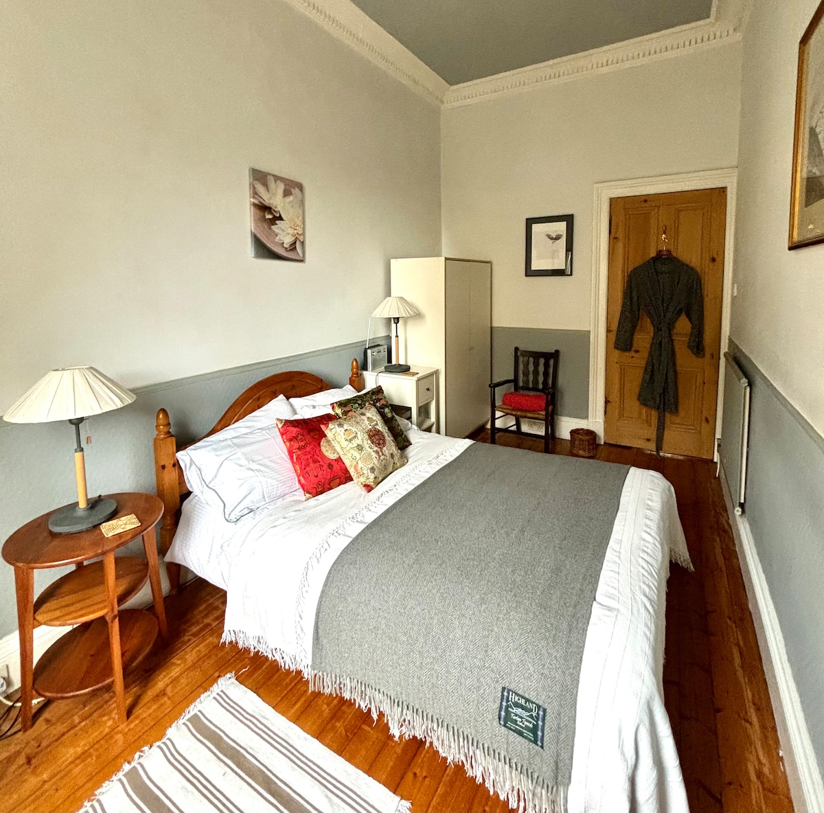 A sunny south facing cottage perfectly located for touring & exploring Central Scotland. The beautiful landscapes of Loch Lomond and the Trossachs, the lively cities of Glasgow and Edinburgh, many activities, attractions and places of interest are easily reached. Anne, the owner, lives next door and a personal welcome is guaranteed. Price includes breakfast pack of local and home made produce. Secure storage and washing facilities for bikes. Private on site EV charger. STL Licence ST00079F