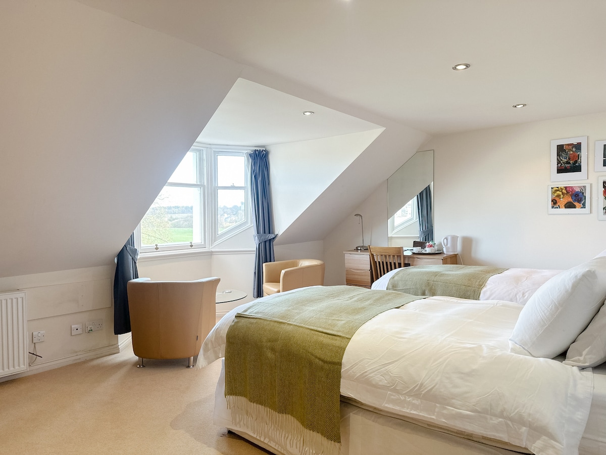 This is our stylish, tranquil and centrally located flat in the heart of the west end of Glasgow. Our attic flat has a capacity for 2 adults, but is also perfect for a small family of 2 adults & an infant. Our blonde sandstone, category A listed townhouse is around 175 years old. There are about 74 steps up to the flat door (which includes a quirky 24 step spiral stair at the end) but as expected with a such a heritage property, there also isn’t a lift.