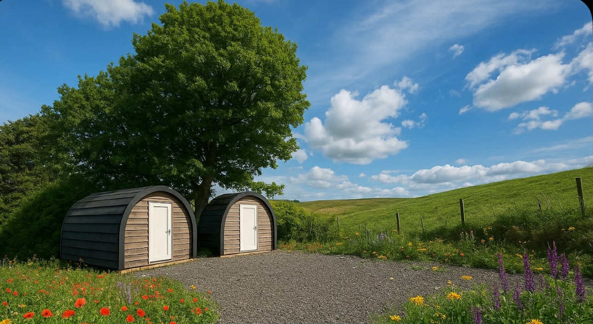 Nestled in the Pentland Hills, near the shores of Harperrig Reservoir are our six luxurious cabins for two. All are stylishly furnished with king size beds, lovely fabrics and design touches plus an en suite shower room. All provide supremely comfortable accommodation. Perfect for a relaxing break, hill walking or open water swimming enthusiasts. Overlooking the lands of Cairns Farm, and the ruins of Cairns Castle, our snug and welcoming cabins await you.