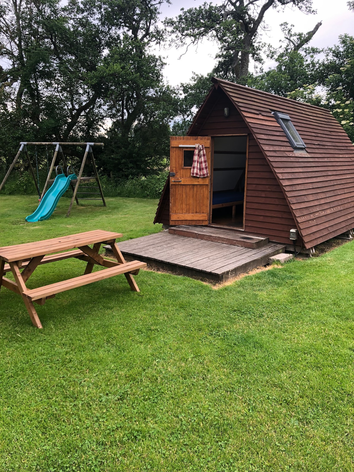 Our cosy and modern (it has electricity and running water, fridge) shepherd’s hut has two rooms- perfect for couples or small families. A double bed in the main room, with wood burner, table and sofa. The back room houses a single sofa bed, perfect for a wee one. Outside there’s a hot tub, kitchen with gas hob and BBQ. There’s a secluded outdoor shower under the trees and a modern compost loo. We also have a larger lodge if groups are bigger (sleeping up to 10): https://abnb.me/vZfzWpwUiT