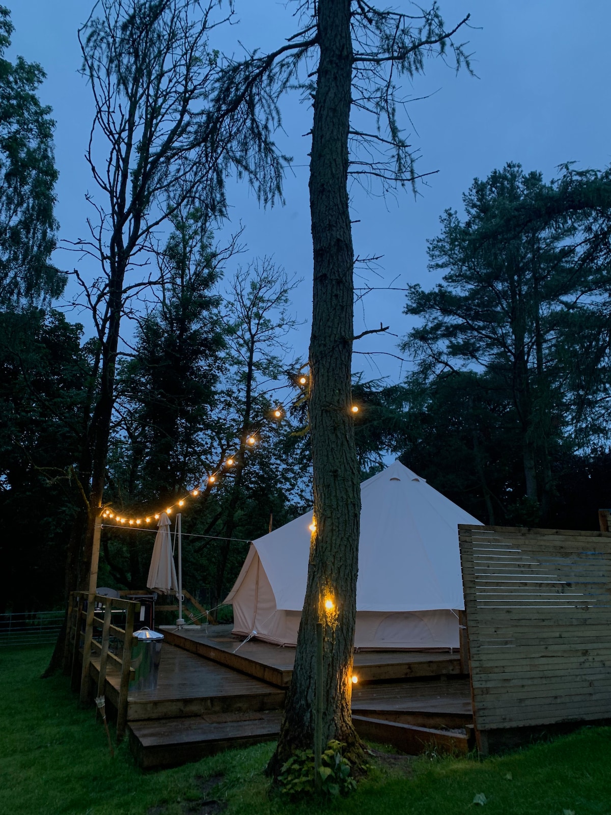 *NEW BOOKINGS: COMPLIMENTARY SAUNA SESSION & LOGS INCLUDED* Experience comfort and peacefulness in our luxury tent. Nestled amidst the serene backdrop of Carnwath, this unique accommodation offers a remarkable glamping experience. Whether you're looking for a romantic escape, a family retreat, or a solo adventure, this space caters to every type of traveller. Unwind in the luxurious wood fired hot tub, or for an additional touch of Nordic indulgence, book a private session in the barrel sauna.