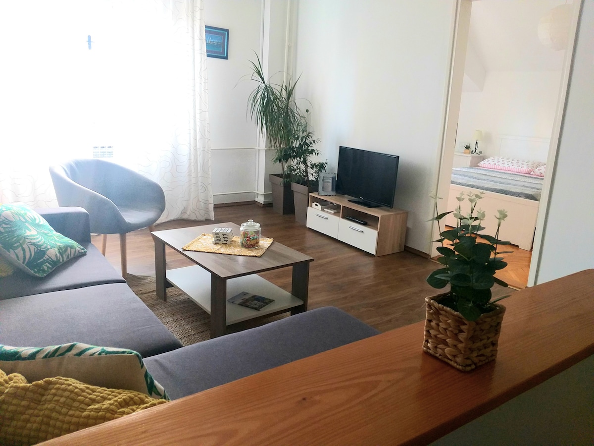 BRAND new elegant apartment in the CITY CENTER less then 10 min walking distance from the main square and train station. Situated in a peaceful backyard on the main street so you can enjoy quiet nights. There is one bedroom with queen size bed, living room with TV + NETFLIX and pull out sofa (queen size), bathroom with toilette and spacious walk in shower separated. All furniture and appliances are brand new. FREE tea&coffee,FREE towels.