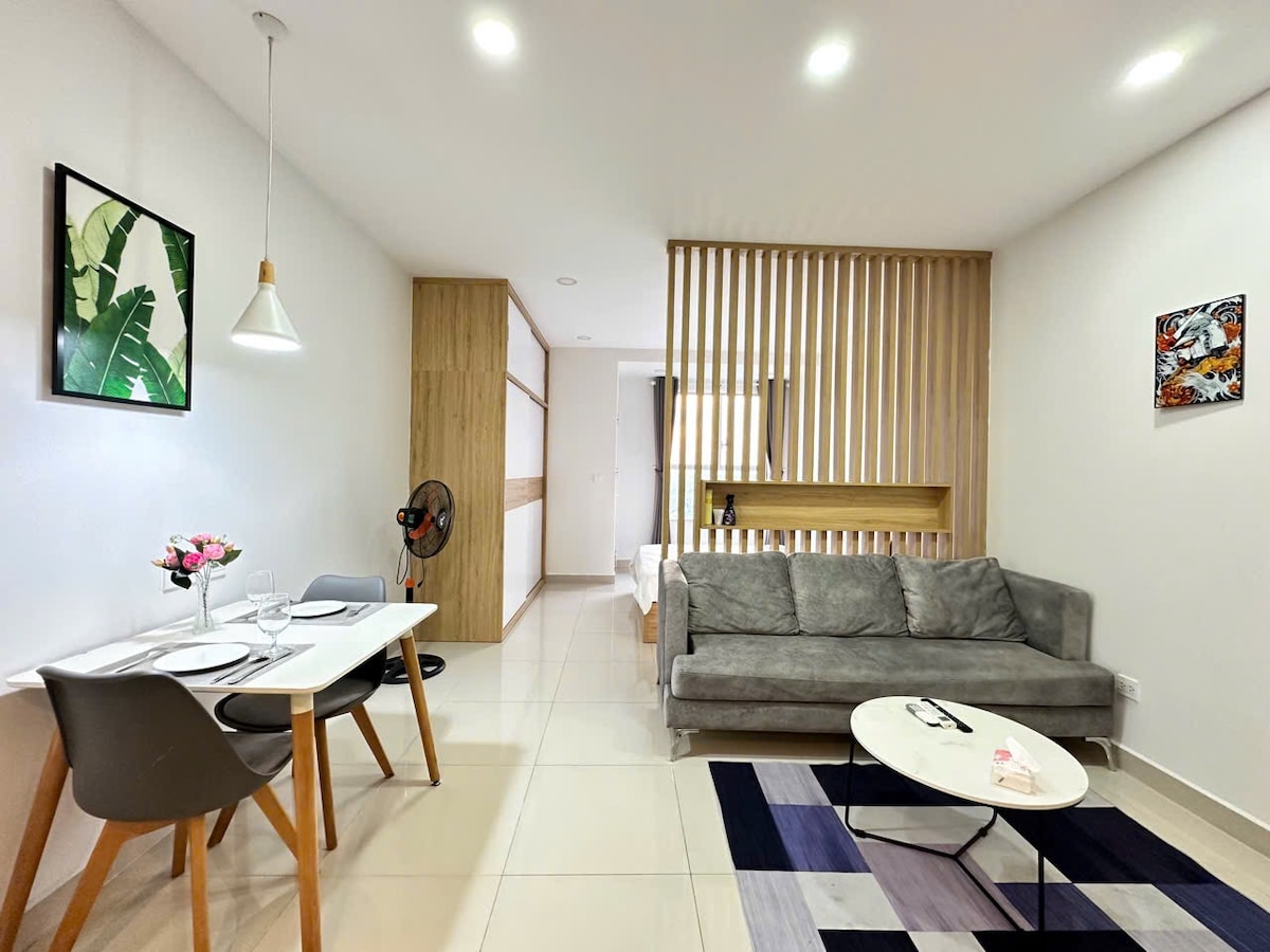 位于 A 办公楼的 40 平方米休闲工作室。公寓位于第 7 区(靠近第 4 区和第 1 区)的绝佳位置 - 靠近一切 - 2 分钟到乐天玛特 - 5 分钟 - 7 分钟到 SC Vivo City、Crescent Mall - 10 分钟到 Bui Vien Str.,(那里有很多酒吧、酒馆) - 步行 3-5 分钟即可到达周围的药店、餐馆、市场和当地购物区。 *我们的工作室配有全套厨房和餐具。就像您自己家一样的地方。 *安静、干净、芳香。