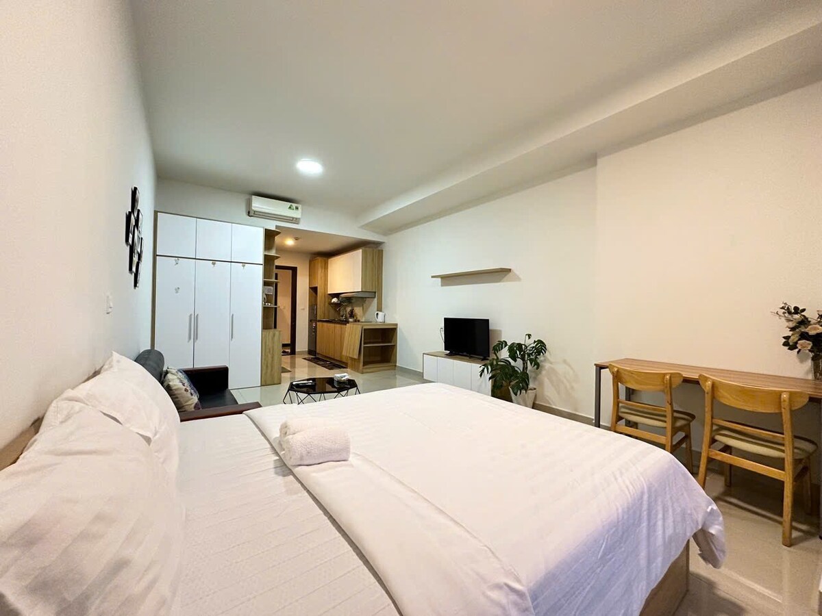 Nằm trong Sunrise city view: dễ dàng tiếp cận mọi địa điểm,vị trí trung tâm. Studio rộng 40m2 ấm áp, giường rộng,nệm cao 40cm êm ái.miễn phí nước uống đóng chai theo tiêu chuẩn, có đầy đủ nội thất,FREE Netfitl và nước nóng.Có thiết bị nấu nướng và ăn uống. Đối diện siêu thị Lotte Quận 7 Có nhiều cửa hàng tiện lợi 24/24 và quán coffee địa phương phòng gym,và hồ bơi, chăm sóc sắc đẹp và y tế.Di chuyển tiện lợi qua Phú Mỹ Hưng và chợ BếnThành q1 cùng các địa điểm nổi tiếng của Tp Hồ Chí Minh..