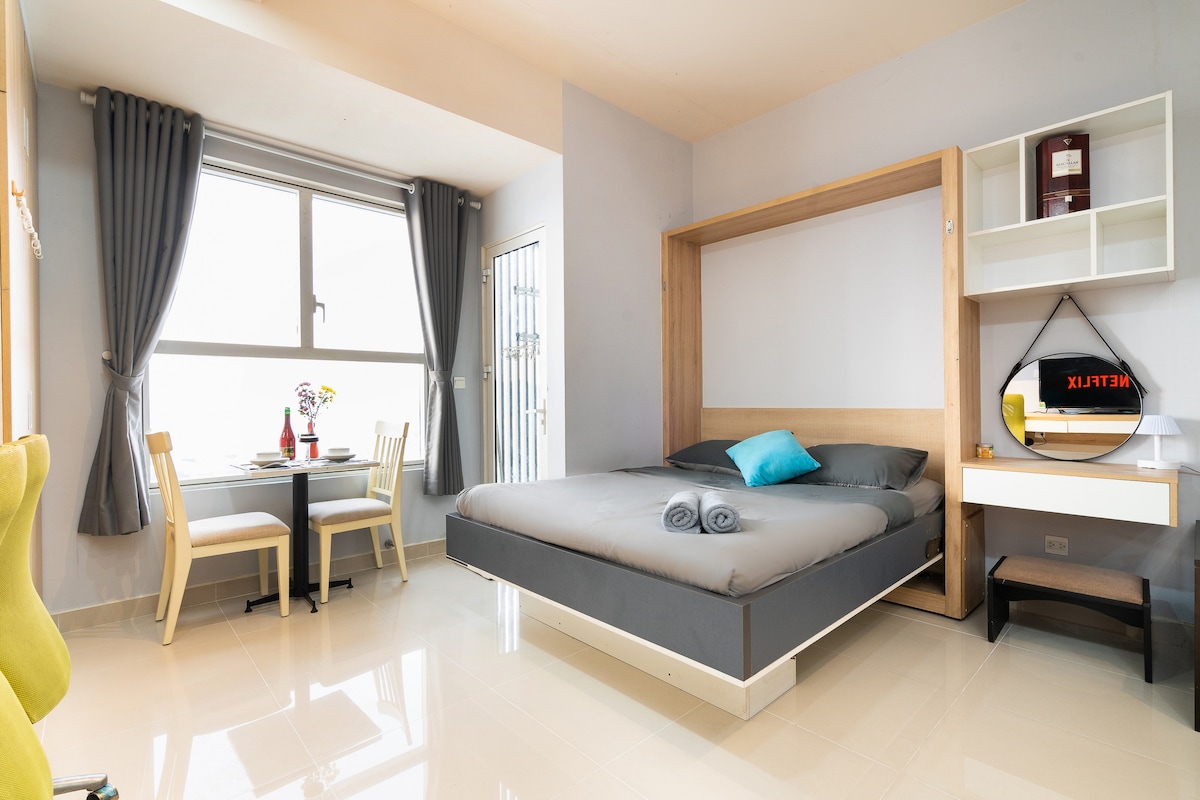 ☆ Two Beds - Full furnish - Free Infinity Swimming Pool & Gym ☆ The apartment is located at a high-grade residential building in the center of D.7, near District 4 and District 1. It has a large bedroom with a bancony and a great wood window bed. It is an amazing place for families or a business trip. * Many mini stores, coffee shops on the ground * Free gym & pool. * 2 mins to LotteMart * 10 mins to D1, Crescent Mall, SECC.. * Security guard, taxi 22/24 hrs You're always welcome here! ♡