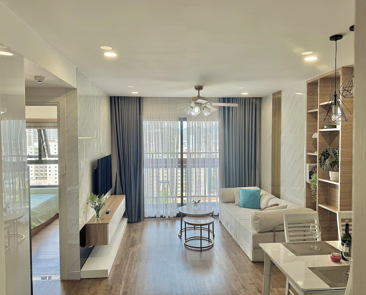An sea-view and City-view apartment 52 sqm which is located in center of Nha Trang City and is at the airport bus stop. This apartment is inside a modern building with shopping mall and is just 2 minutes walk to beach, cinemas, supermarket, pubs, night market, 5-star hotels such as I ntercontinental, Sheraton, Sunrise,.. We have full funiture and convenient. Really wonderful and enjoy your vacation with really good air.
