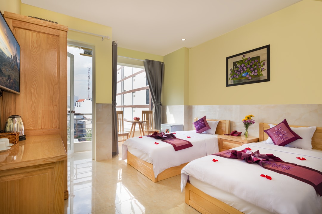 DISCOUNT 20% In front of our hotel, the beach and sea are amazing! You will have a memorable trip in Nha Trang. Having a stunning view, this room is comfortable for 2 person. We make sure it fresh & clean. - 1 queen bed - Bed is very comfortable - Window & lots of natural light - Private bathroom & full of essenitals - Elevator, air conditioner, fridge, water kettle, fast wifi, TV, table, chair, hair dryer - FREE cleaning service & parking - Receptionist works 24/7 #Add: Pham Van Dong street