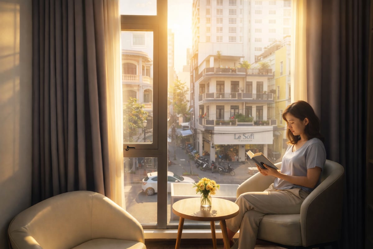 A bright, quiet studio at Holi Anna, located right on Nha Trang’s central main street yet peacefully tucked at the back for total comfort. The space is airy, clean, and fully equipped with fast Wi-Fi, a spacious work desk, and a large TV. Everything is new, well maintained. Perfect location to experience city, steps from the tourist street, dining, cafés, and the beach. Ideal for solo travelers or couples seeking convenience and calm, with all essentials provided for a smooth and pleasant stay.