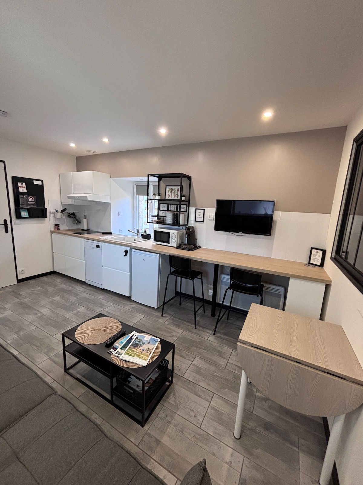 Profitez d'un logement élégant et central. Joli T2 de 32m2 situé au centre ville de Perros Guirec. Idéalement situé en centre ville : - wifi, NETFLIX, TNT disponible. - 500m du port de Perros Guirec - 5min en voiture de la plage de Trestraou et de son casino - 2min en voiture de la plage de Trestrignel Nombreux commerces à proximité (boulangerie, café, restaurants, épicerie fine...) Localisation idéale pour visiter la côte de Granite Rose et ses alentours