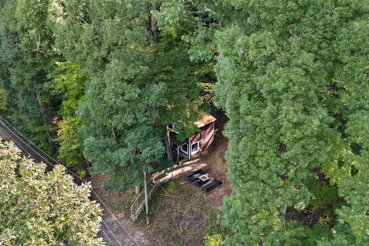 Treehouse vibes with a lake view. Hike, wander, then come back and slow down. Sol Sanctuary is a cozy woodland retreat near Mohican State Lodge and forest trails. Perched among the trees, it offers peaceful lake views, a deep soaking tub, firepit, and sunset evenings. For more details and add-ons, search Sol Sanctuary online.