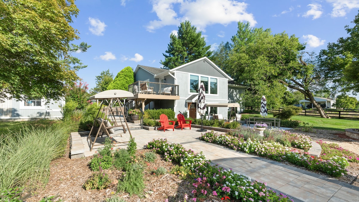 Hilltop sits on a park-like estate. This NEWLY REMODLED Bungalow is part of a charming duplex, offering a private entrance and exclusive outdoor seating. Enjoy stunning views of rolling hills, ponds, and lush landscaping. Stay and refresh your soul in our peaceful cottage or explore! Close to breweries, wineries, the C&O Canal for biking and hiking, and antique shopping at the popular Lucketts Store. Just 11 miles to historic Leesburg, VA, Morven Park, or 15 miles to Frederick, MD.
