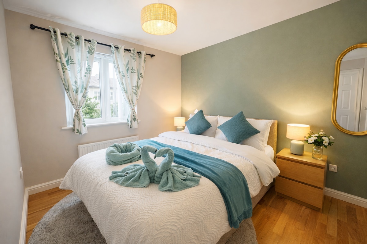 Cosy terraced house in popular Quorn, well presented with all mod cons. There is space to sleep six, the master bedroom is fitted with a superking sized bed and bedroom two is fitted with a 4ft double; the living room also has a sofa bed which is a double bed when folded out. Private back garden with LED lighting. 5 minute drive to Loughborough town and only a 15 minute drive from the beautiful Bradgate park. Off road parking 7kw electrical vehicle charging is available with advanced notice.