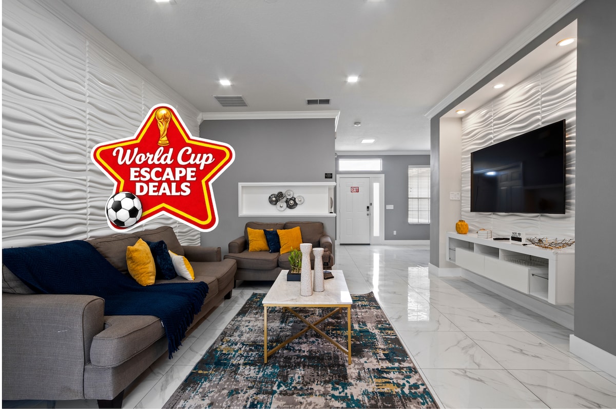 Escape to your luxurious Mediterranean villa! Perfect for 10+ guests, Level 2 EV Charger with free off-peak charging, pet & kids friendly 6-BR, 4.5-bath home offers ultimate comfort. Enjoy a private heated pool, game room & TVs in bedrooms. Nestled in a secure gated resort, enjoy the resort pool & spa, gym & playground. Our villa also features a gas BBQ grill & baby-friendly amenities. Ideal for families or business travelers. Close to all major theme parks. Book your unforgettable escape today!