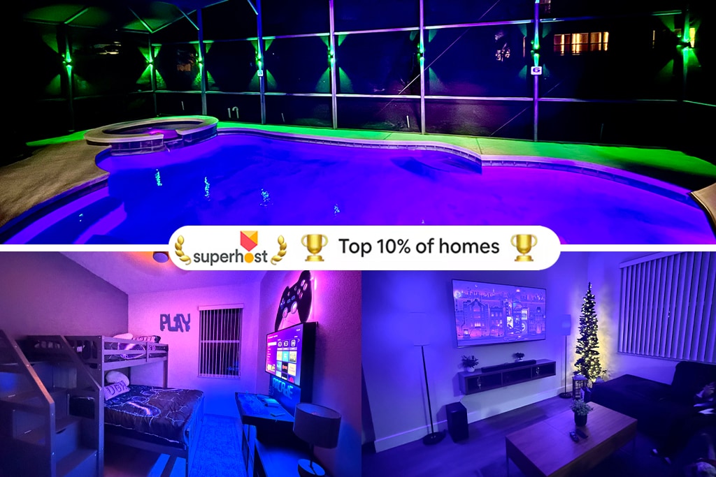 Amazing Brand New Modern Luxurious Home at Encore Resort @ Reunion. PET-FRIENDLY & Minutes to all Theme Parks. BRAND NEW HOME. Private Pool & Spa / Game Room / Movie Theater / Gym / Massage Chair / Fireplace / PS5 / Board Games & Much Much More Embrace the extraordinary and book your stay at our home, where luxury, entertainment come together for an unforgettable vacation experience. ** Please review the rules before booking. Waterpark access is not included. **
