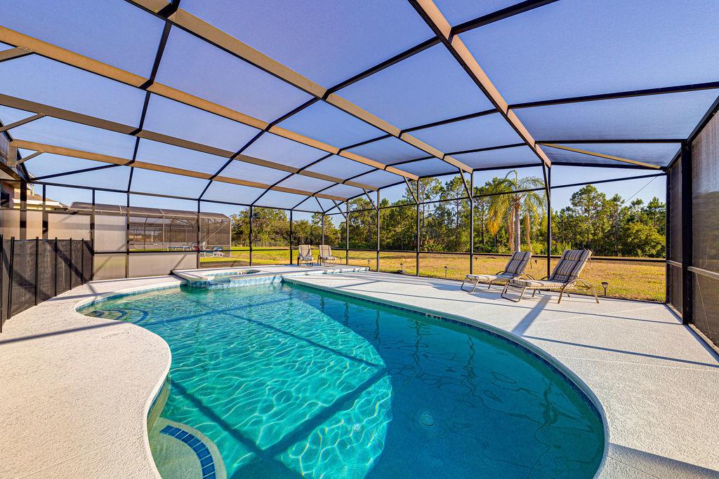 Gorgeous 3 bedroom, 2-bathroom villa set on a 1/4 acre of land, with our own screened, private, heated swimming pool & Jacuzzi, and high speed internet. Situated in a quiet residential community on the sought after Sunridge Woods in Davenport, only 9 miles from Disney. Please note smoking or parties are NOT allowed in house premises. No pool heater available during May through October. **You also MUST be 21 or older to rent this property**