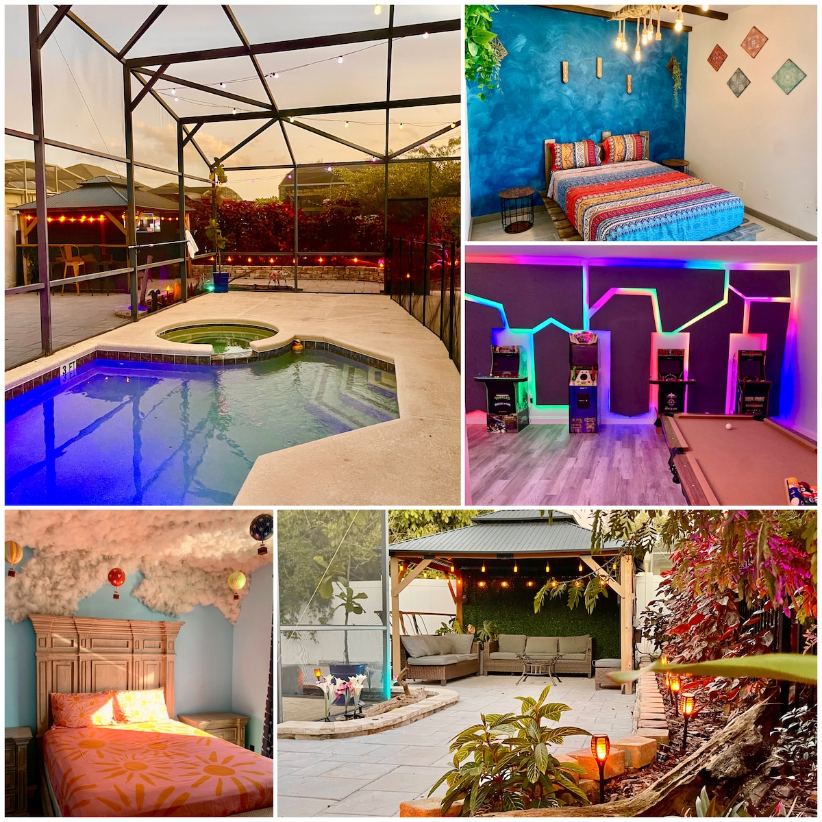 The whole family will have fun in our Magical Disney Home where the Magic of Mickey Mouse,Toy Story, Frozen and Minion bedrooms with Sensor Songs when you walk in each room, uv and Led lights.Color changing Led lights in pool + bbq area, loungers for sun tanning.This Villa has Disney Hand UV light Painted by a local artist and a Game room with air hockey arcade, your children will feel the Magic as soon as they walk in the home, from smell to sound to sight This is it!Your Magical Dream Vacation