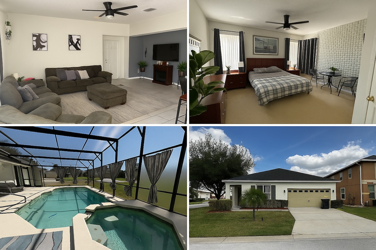 Near Disney - 4BR 3Bath w/ Heated Pool & Jacuzzi