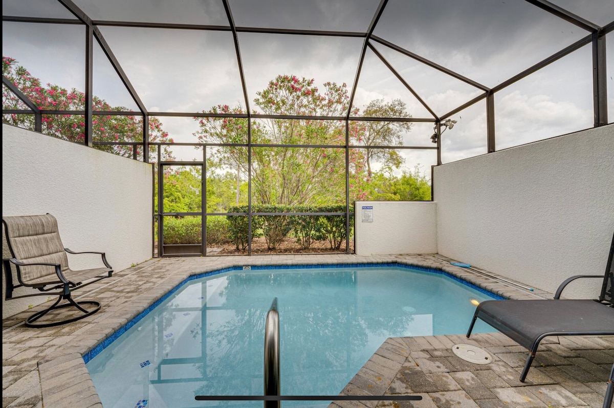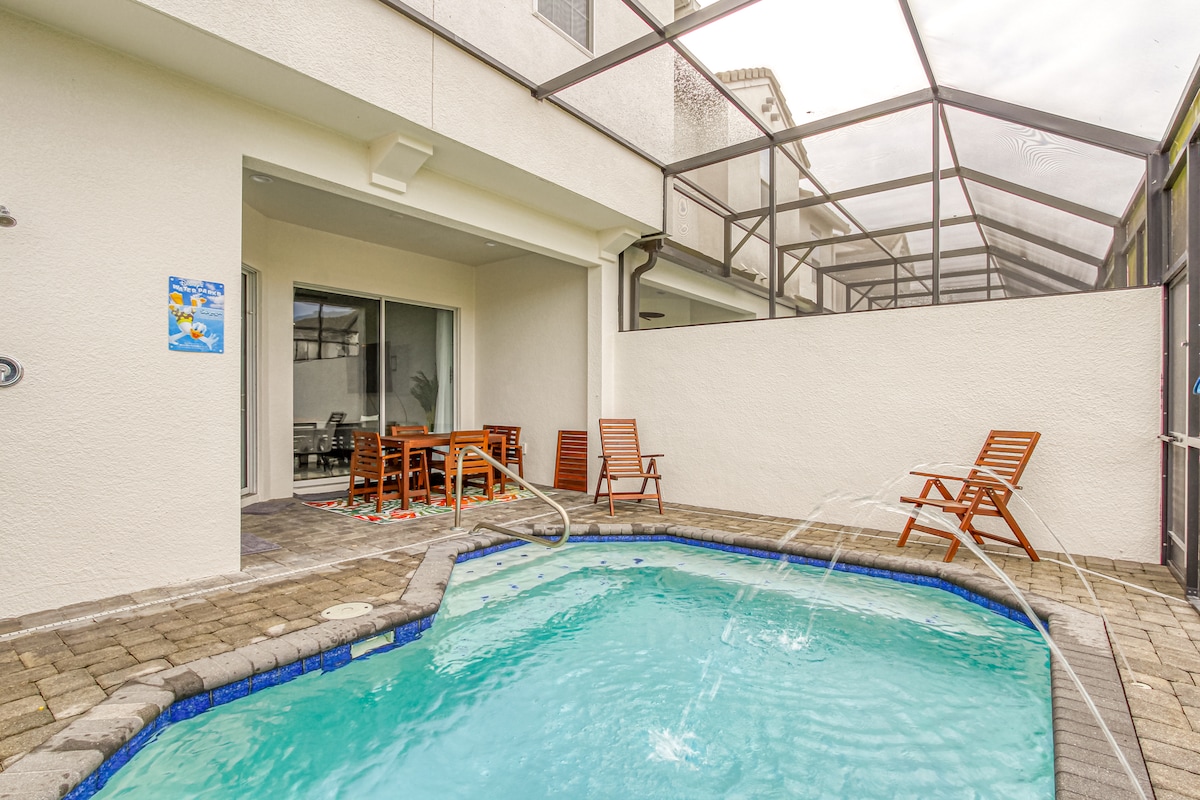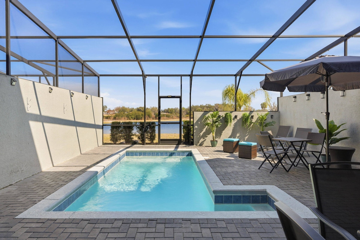 Ideally situated at the doorstep of Disney, this beautiful gated community is thoughtfully designed for unforgettable Florida vacations. Perfect for families, friends, or group getaways, the residence boasts a chef-style island kitchen, elegantly appointed dining and living spaces, a private screened lanai, and a serene plunge pool. Just a short stroll away, enjoy exclusive access to resort-style amenities including a sparkling swimming pool and a vibrant splash pad for children.