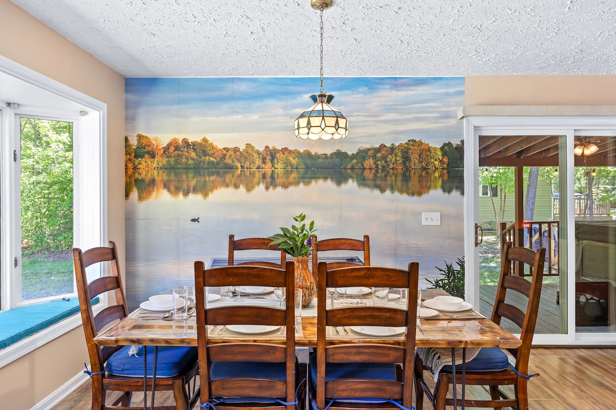 Welcome to The Whistlin’ Terrapin—your serene Lake Anna getaway! Just a short 3 minute walk brings you to the lake, where you will love swimming, fishing, and jumping right from the dock into the deep water. Rainy day? No problem! Enjoy our outdoor covered game barn with a propane fire pit. You will have fun playing ping-pong, foosball, darts, and all of our numerous yard games can be played dry under cover.