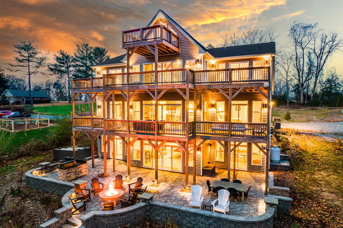 Stepping Stone Cove is your family's perfect spot for scenic views, swimming, fishing, and boating. Located in a quiet cove, this gorgeous home features an open living space, 2 fireplaces, 4 bedrooms, 2.5 baths, rec room, & office. Outside, you'll find a screened-in porch, EV charger, deck, and patio with hammock and hot tub with lake views for ultimate relaxation. Head out the back door to our private dock and lake access! Central AC, wifi, and dog-friendly, 9 min drive to downtown groceries!