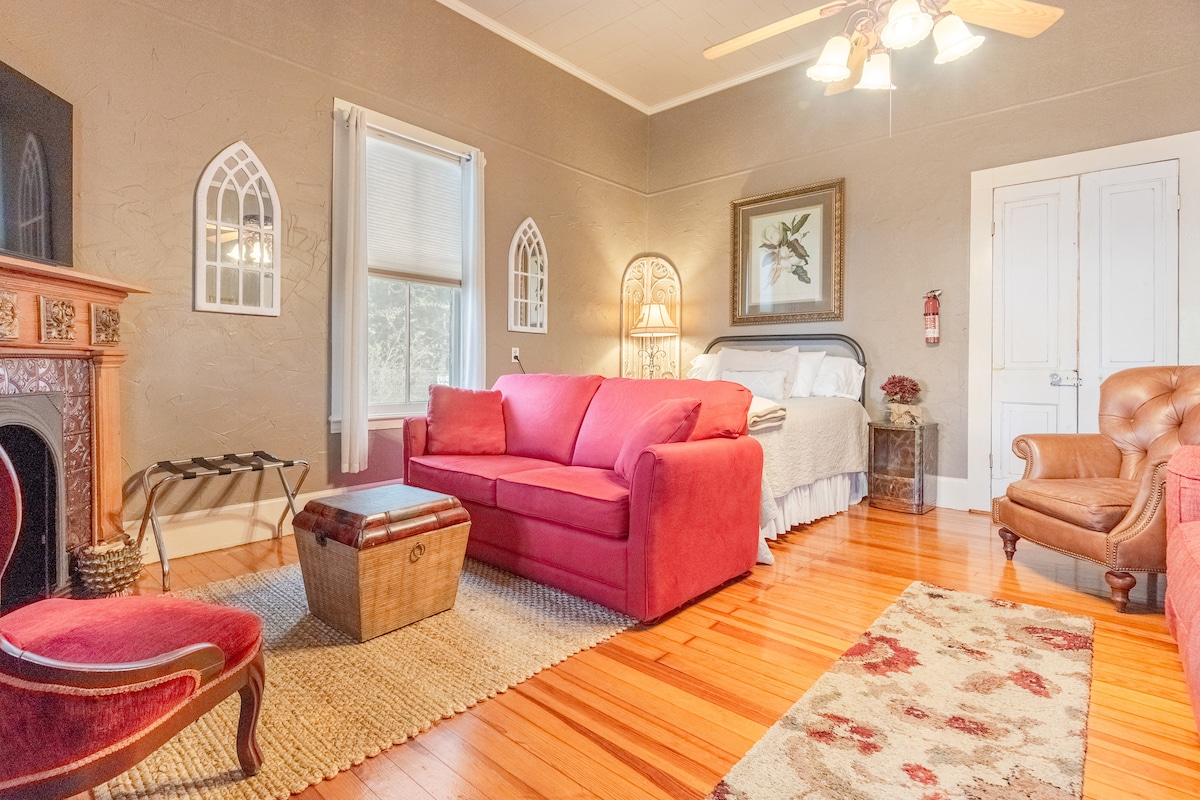 A unique studio that is part of a historic double shotgun-style home just across from the New Orleans Fair Grounds Race Course, home of Jazz Fest! Enter the completely private suite through your own private side door to the one bedroom studio, complete with galley kitchen and bathroom. Built early 1900s, our home has been completely renovated. Period touches including heart of pine floors, marble, and coal-burning fireplace are complemented by the modern kitchen and bath. LICENSE #22-RSTR-15093